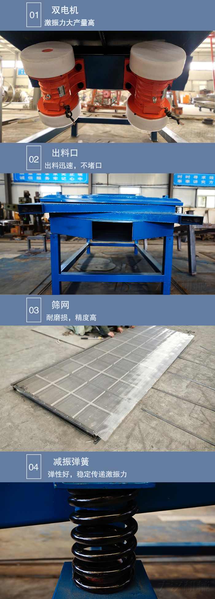1,双电机作为振动源,激振力大产量高