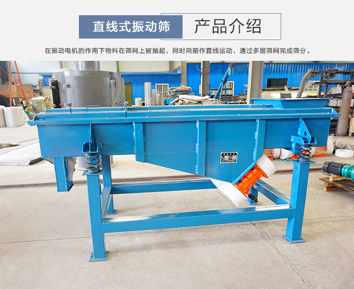 直线振动筛利用振动电机激振作为振动动力来源,使物料在筛网上被抛起,同时向前作直线运动,物料从给料机均匀地进入筛分机的进料口,通过多层筛网产生数种规格的筛上物、筛下物、分别从各自的出口排出。具有耗能低、产量高、结构简单、易维修、全封闭结构,无粉尘溢散,自动排料,更适合于流水线作业。